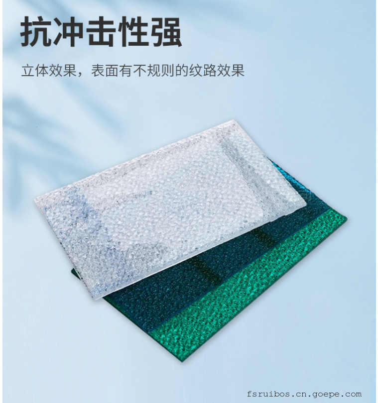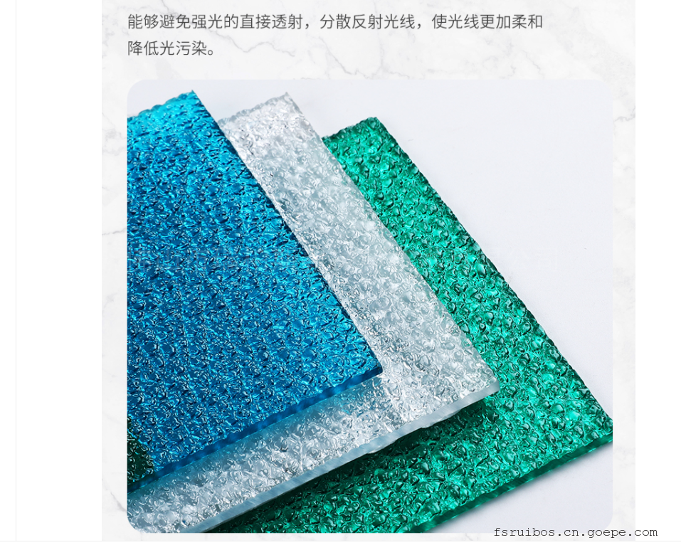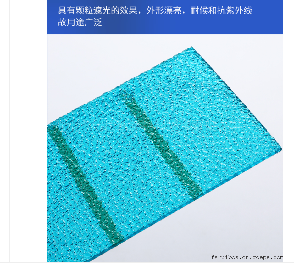 产品表面含有防紫外线共挤出层,户外耐候性好,长期使用仍保持良好的光学特性和机械性能。